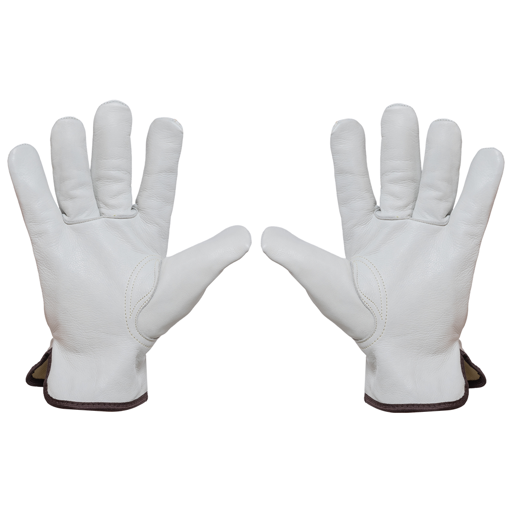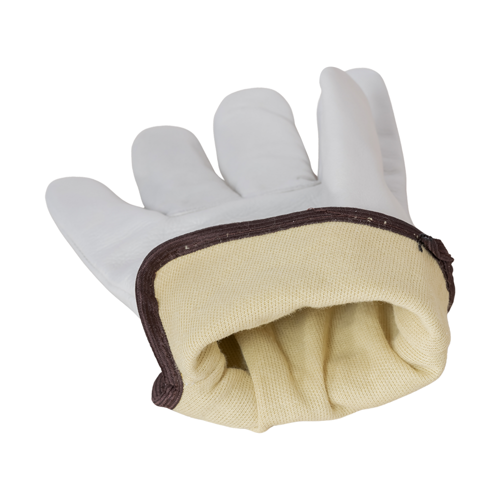 These premium driver gloves are made from beige cow grain leather and designed with a keystone thumb for superior comfort, grip, and flexibility. The interior features a para-aramid knitted cut-resistant lining (Para-aramid/Steel/Polyester blend, 250 GSM) that provides reliable cut level A5 protection, making them ideal for tough industrial applications. With a thickness of 0.9–1.1 mm and available in sizes S to 4XL, these gloves combine durability, safety, and comfort for professional performance.