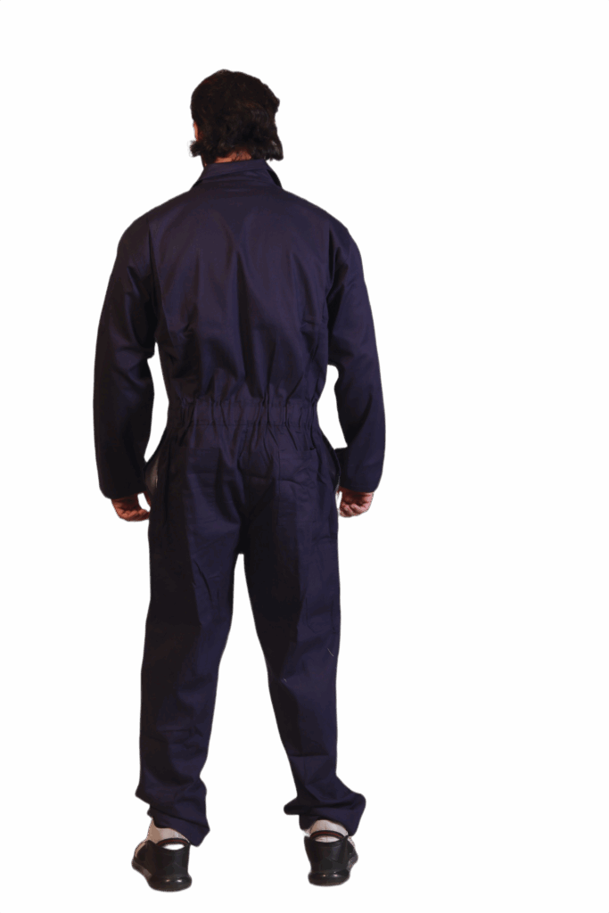 A durable and protective workwear garment designed with practical utility features, including chest pocket with metal button, front closure with YKK metal zipper and button, pen pocket on left arm, tool pocket on right leg, and back pocket. Available in 100% cotton, polyester-cotton, treated fire-retardant, and inherent fire-retardant fabrics. Certified to EN 61482, EN 1149-5, EN ISO 11612, and EN ISO 11611 safety standards, ensuring reliable protection in hazardous work environments.