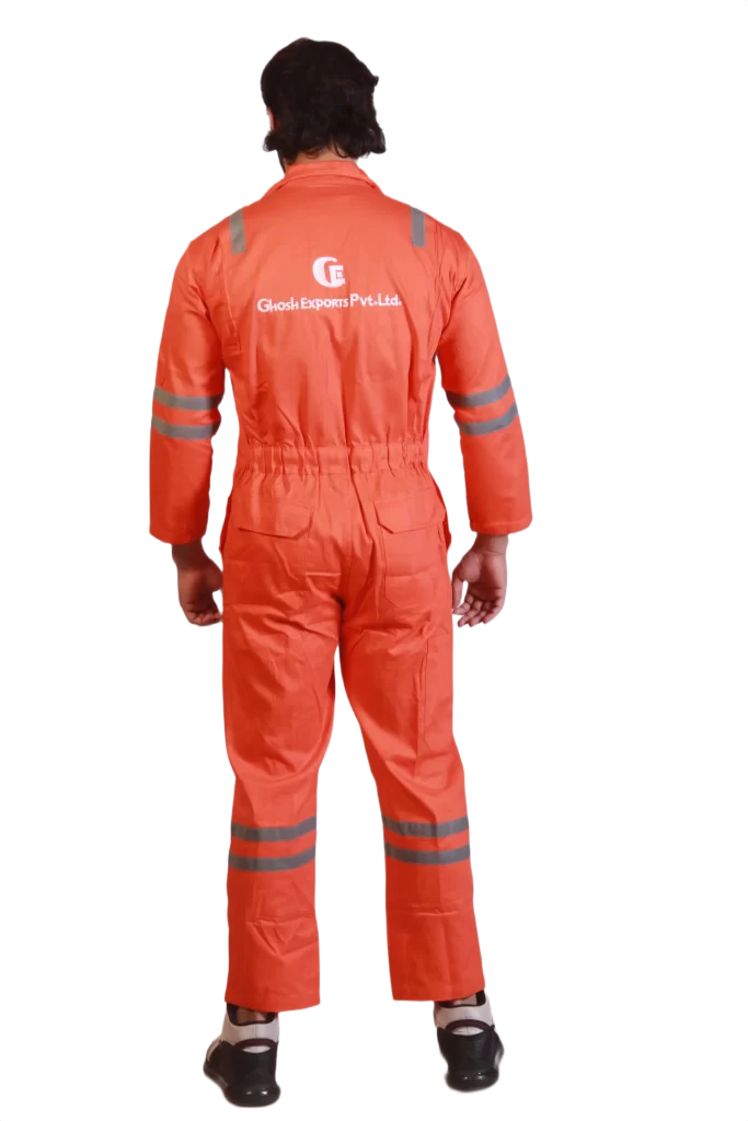 A durable and functional protective coverall built for industrial safety and comfort. Designed with a chest pocket secured by metal zipper, front closure with YKK metal zipper and metal button, and 1″ reflective tape for high visibility. Added utility includes a back pocket with metal button, pen pocket on the left arm, tool pocket on the right leg, and an elasticated back waist to ensure a secure and flexible fit.